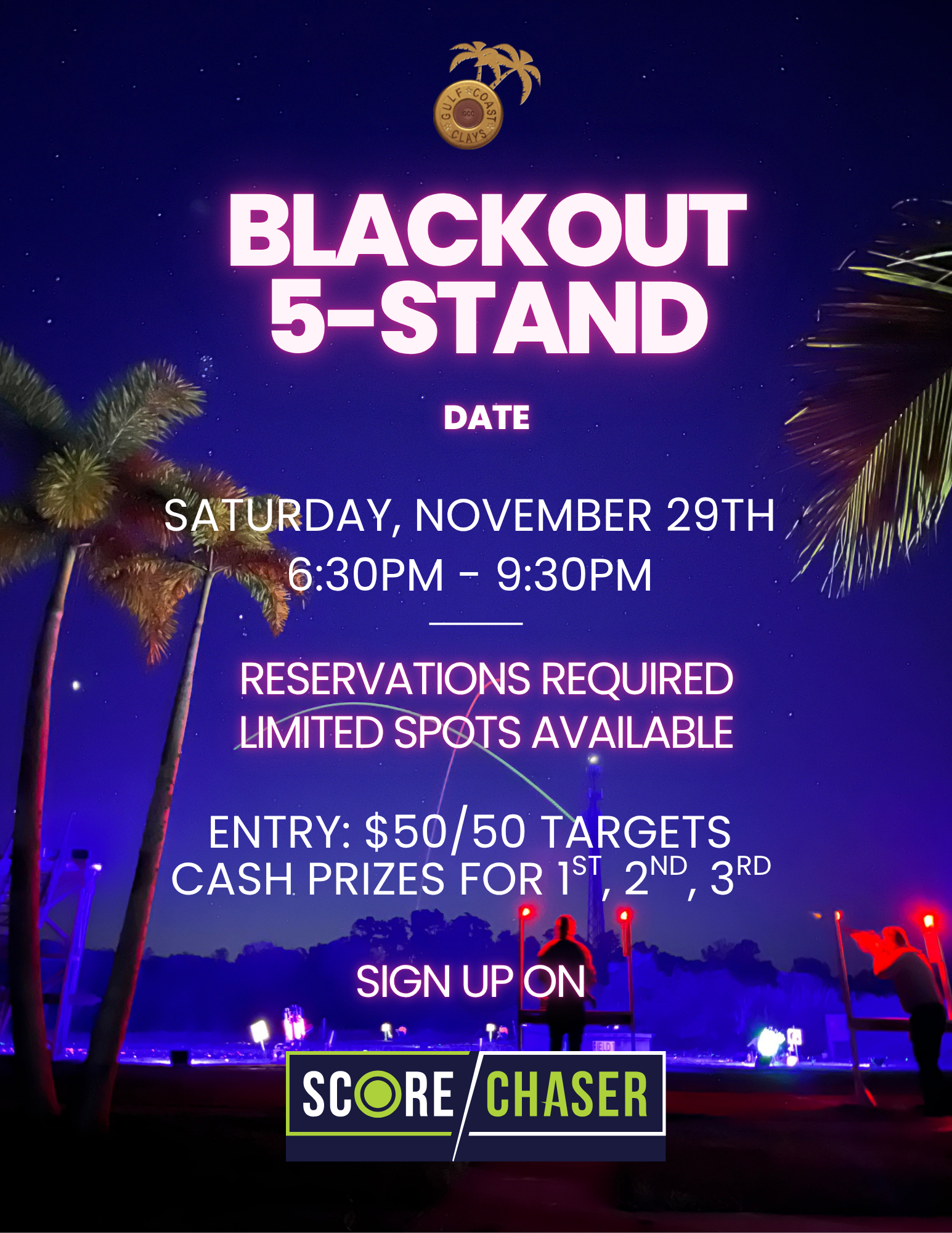 BlackOut 5-Stand is back at Gulf Coast Clays – join us for an exciting evening of night shooting! Event Details:Format: 5-Stand – 2…