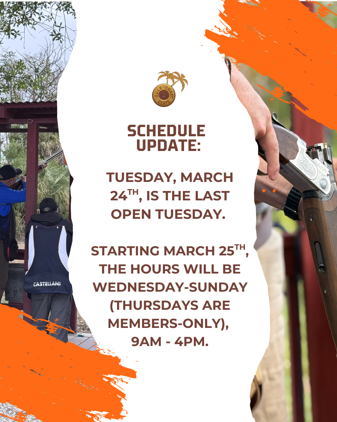 Please note: this tournament is only for the current members of Gulf Coast Clays gun club. The reign of 2025 Club Champions is…