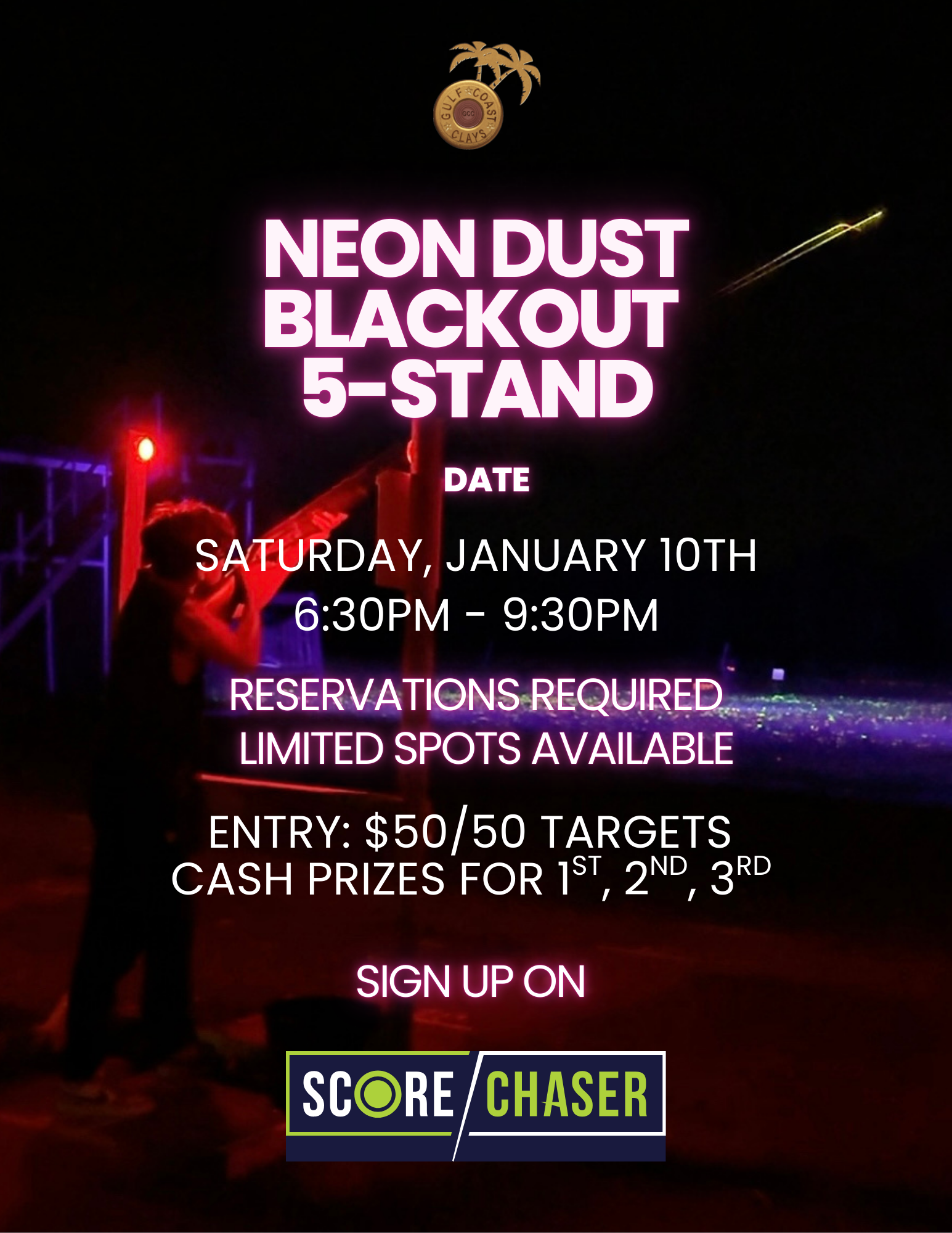 Join us for an exciting evening of night shooting! Event Details:Format: 5-Stand – 2 Rounds (50 Targets)Entry Fee: $50Start Times: 6:30PM, 7:30PM, 8:30PM…